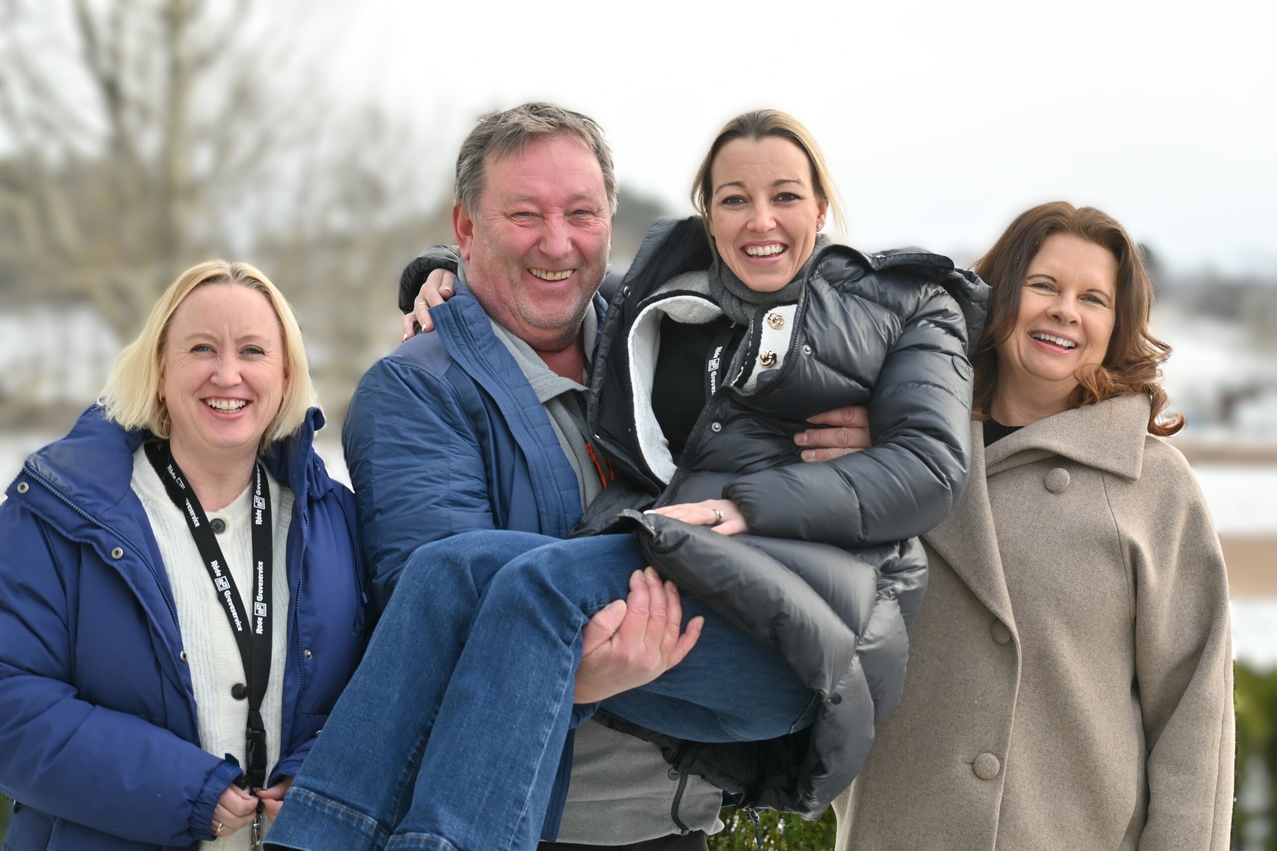 Samhold og godt humør på jobben. Daglig leder Trine Andersen Johannessen løftes fram av fra venstre: Renate Aaneland, CFO, Hans Fredrik Suther, teknisk sjef og Torill Skau, leder HMS, KS og Ytre Miljø.